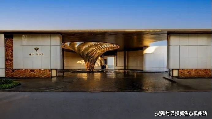门庭延街的外立面,以精工定制弧形米色石材为主调,镶嵌典藏级老虎玉大理石,点缀古铜色现代海派艺术感灯器,整体呈现出百年海派的贵雅气质。